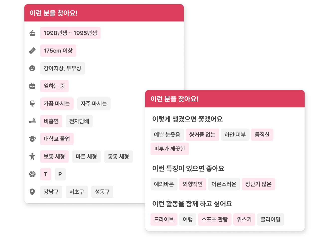내 정보는 소중하니까.이상형에게 궁금한 만큼만 등록해요!