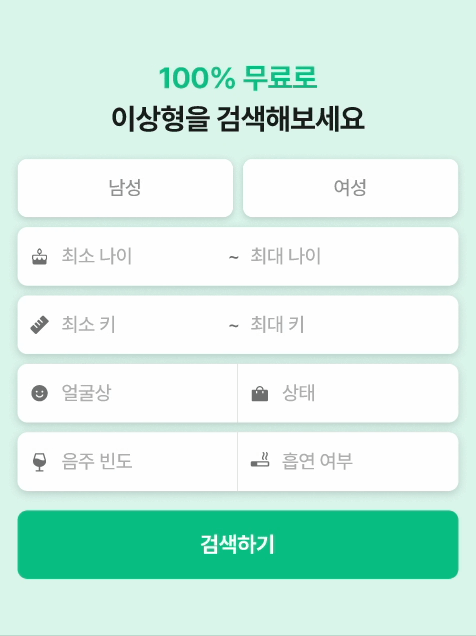 항목별 키워드를 입력해이상형을 검색할 수 있어요.