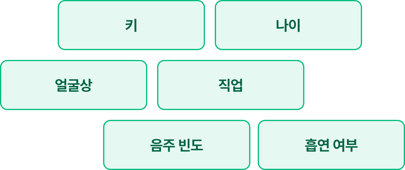 항목별 키워드를 입력해이상형을 검색할 수 있어요.